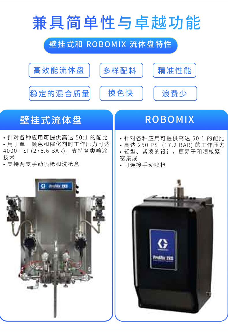 Official agent of Graco in the United States, the two component and three component electronic proportioning system provides reliable electronic proportioning for various solvent based, water-based, and acid cured materials.